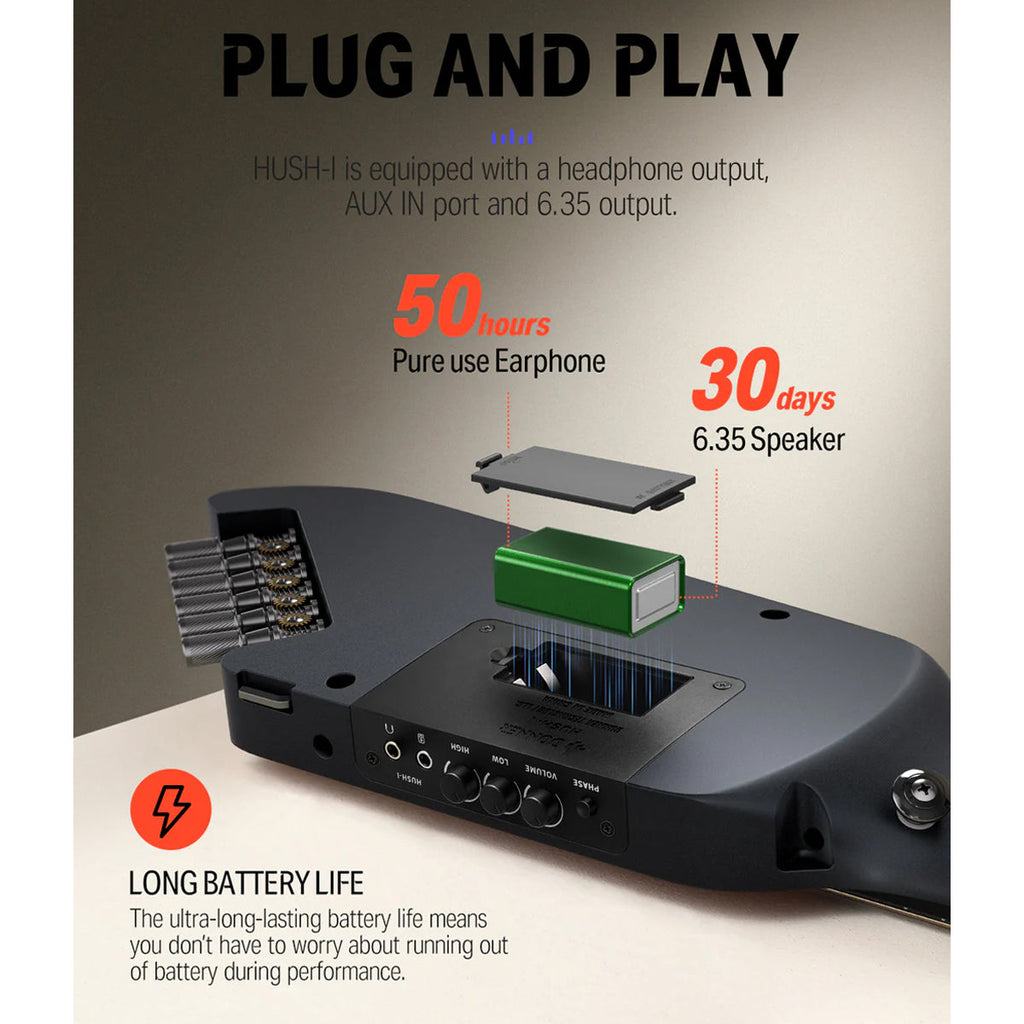 The Donner HUSH-I breaks the conventions with the headless concise frame design which delivers the ultimate compaction for travel and multiple playing scenarios. The overall design and the selection of fingerboard and frame material also save extra usage of wood making the Donner HUSH-I one of the most environmentally friendly wooden guitars.