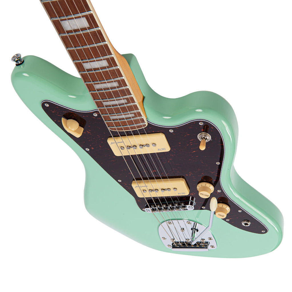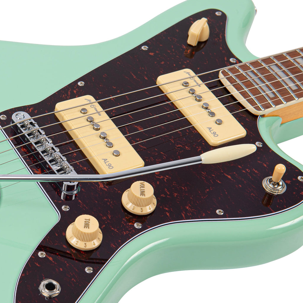 Two Alan Entwistle X90A Soapbar alnico coil pickups provide fat and articulate cleans and cutting, punchy overdriven tones.