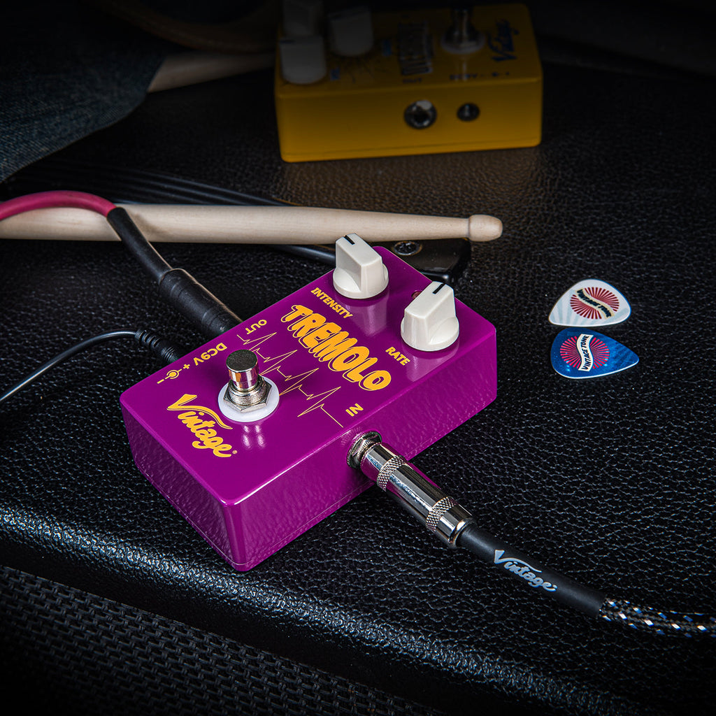 A vintage-style tremolo pedal that recreates classic tremolo tones (evoking retro amps and analog circuits). This is an easy to use Vintage style Tremolo Pedal with a wide range of Rate and Intensity.