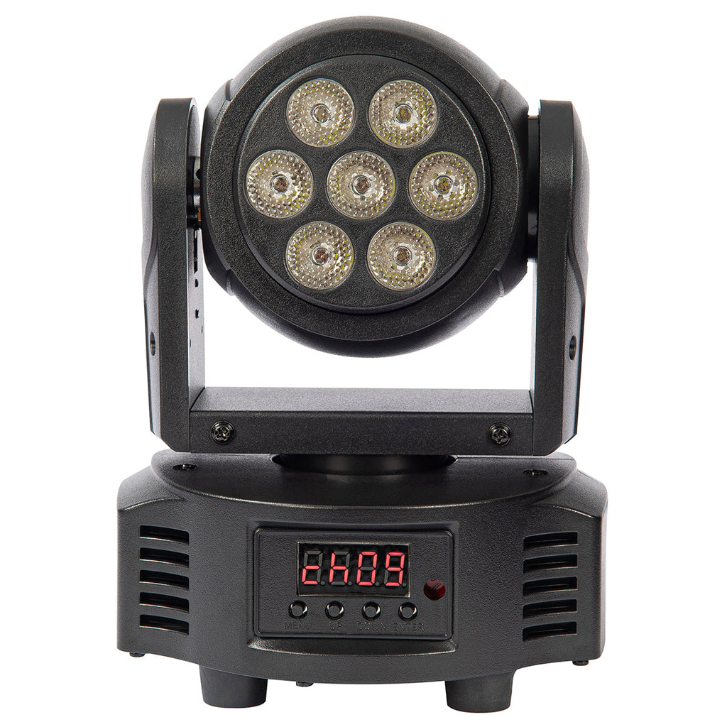 As a stand-alone unit, the KAM Mini Moving Headlight with 7 LEDs in 2-3-2 format, delivers size-defying levels of stunning colours with Auto/Manual, Sound Activated or DMX controlled and Master/Slave connections.